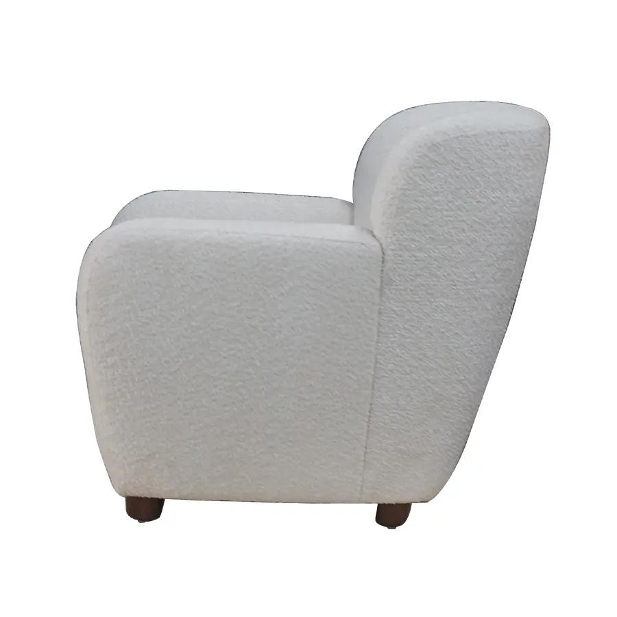 - Compact single-seat sofa with enveloping silhouette