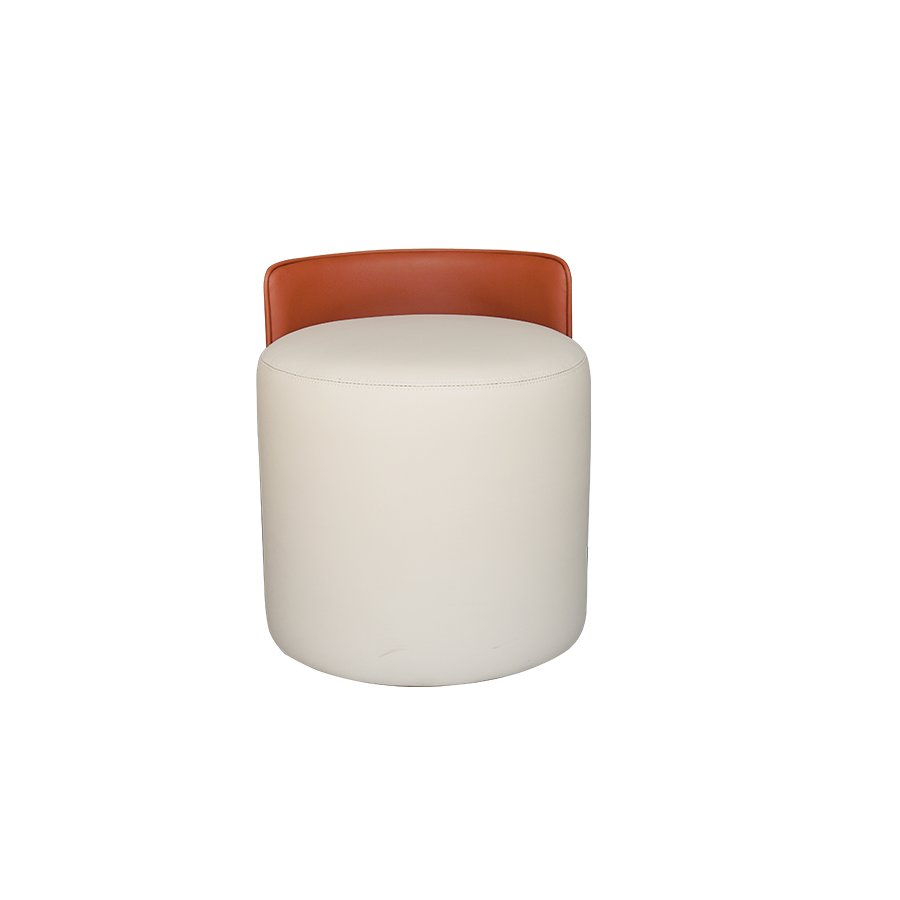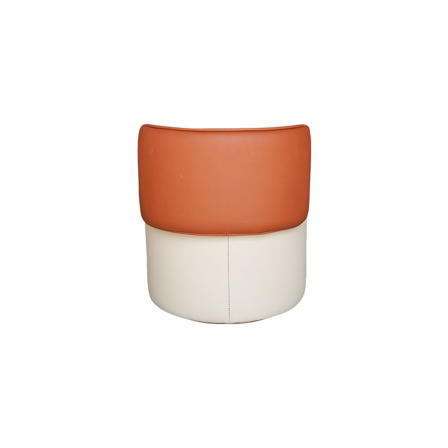 Its rounded form keeps the look clean and approachable, while the small integrated back panel adds subtle support and a clear design identity.The two-tone upholstery combination helps this piece stand out without becoming visually heavy, making it easy to match with different interior styles.