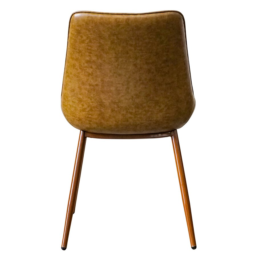 One of the key details of this chair is the backrest shape. The back wraps down toward the sides and leaves an open space in the lower center, which helps the chair feel less heavy even though the upholstery coverage is relatively full. This kind of design works well in restaurant and hospitality interiors where comfort is important, but visual bulk still needs to be controlled.
