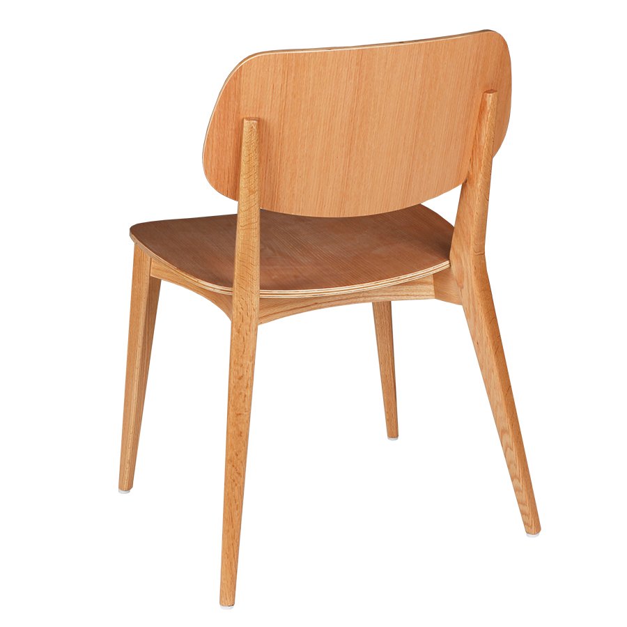 The frame is made of solid beech wood, which gives the chair a stable base for everyday commercial use. Beech is a practical material for dining furniture because it offers a good balance between appearance, durability, and production consistency. The wood stain finish keeps the surface warm and natural, while still allowing the chair to fit into modern, Scandinavian, or casual restaurant interiors.